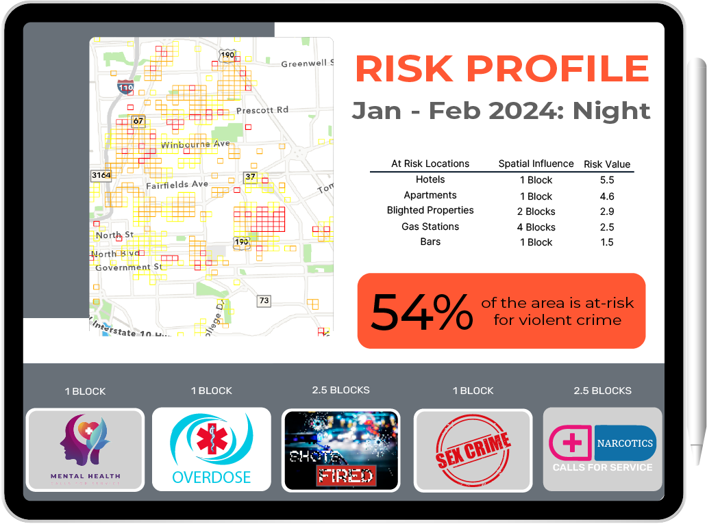 RTM Models reveal the highest-risk areas, they also provide context as to where cameras may be most beneficial such as gas stations, blighted properties, and poorly lit streets within the high risk areas.